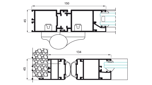 Con una posibilidad de composición de 1 y 2 hojas, con o sin fijos, posee doble opción de motor para generar la apertura: uno de 12 cm. de altura, y otro minimalista, de tan sólo 7 cm.